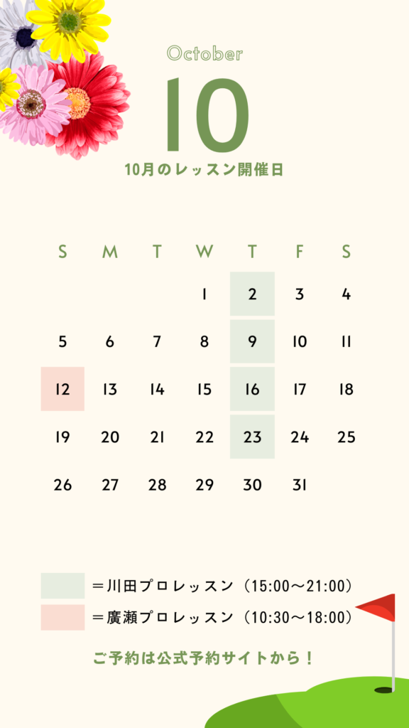 10月度のココデゴルフ「パーソナルレッスン」スケジュールを公開いたしました。